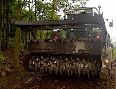 Es müssen nicht immer riesige Bäume sein, die den Weg in unsere Häckselmaschine finden, auch Sträucher müssen immer wieder aus Gärten und Grünanlagen weichen. Dabei kommt unter anderem unser Forstmulcher zum Einsatz, der Strauchwerk und kleinere Baumbestände bis zu einem Stammdurchmesser von 25 cm zu Mulch verarbeitet. |